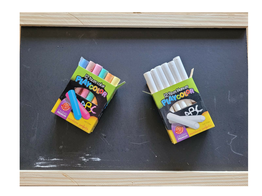Pizarra para Tizas Infantil de madera + tizas blancas + tizas colores